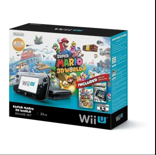 La consola Nintendo Wii U Deluxe Set: Super Mario 3D World es una edición especial que incluye la consola Wii U negra con 32 GB de almacenamiento, el juego Super Mario 3D World y Nintendo Land preinstalados o en disco.