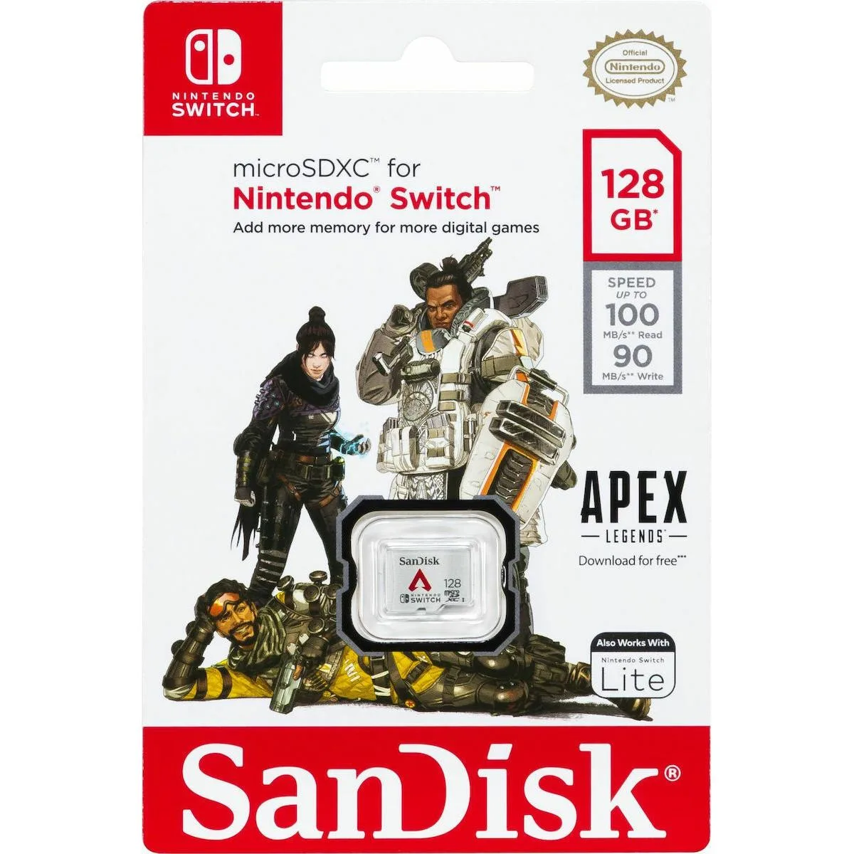 Con la tarjeta SanDisk® microSDXC™ para Nintendo Switch™, podrás mantener Apex Legends™ y tus otros juegos digitales favoritos en un solo lugar para que estés preparado para jugar en cualquier momento.